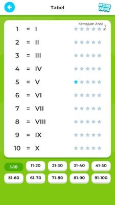 Kecanggihan utama Angka Romawi terletak pada algoritma adaptifnya yang secara presisi menyesuaikan intensitas pembelajaran. Aplikasi ini secara cerdas mendeteksi operasi matematika mana yang paling sulit bagi anak Anda, kemudian memfokuskan latihan pada area tersebut untuk penguasaan yang lebih mendalam. Kemajuan belajar divisualisasikan dengan indah melalui sistem bintang, memberikan gambaran jelas tentang pencapaian dalam setiap aktivitas spesifik maupun progres secara keseluruhan. Algoritma ini bahkan secara terpisah menghitung kemajuan untuk setiap jenis operasi matematika dan beradaptasi dengan rentang angka serta hasil yang telah Anda pilih, memastikan pembelajaran yang benar-benar personal. Pengaturan ini dapat disesuaikan kapan saja melalui opsi di dalam aplikasi.