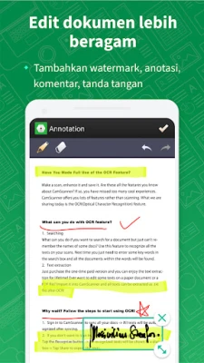 Rasakan kemudahan mencetak nirkabel langsung dari CamScanner ke printer terdekat, tanpa instalasi driver tambahan. Aplikasi ini juga memfasilitasi pengiriman faksimili jarak jauh ke puluhan negara. Untuk sentuhan personal, gunakan alat pengeditan canggih CamScanner untuk menambahkan anotasi, keterangan, atau tanda air khusus pada dokumen Anda. Fitur pencarian cepat, didukung oleh penandaan dan OCR, memastikan Anda dapat menemukan setiap file dalam hitungan detik. Demi keamanan data, CamScanner memungkinkan Anda melindungi dokumen rahasia dengan kata sandi, bahkan untuk tautan unduhannya. Akses tanpa batas pada semua perangkat Anda dengan sinkronisasi lintas platform yang mulus.