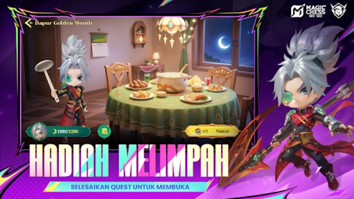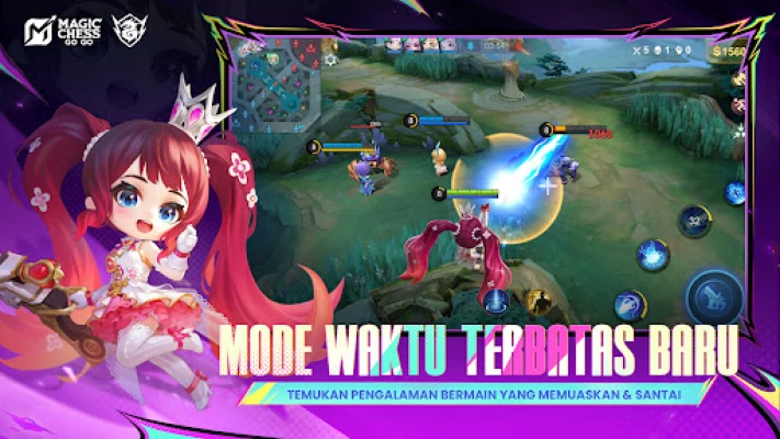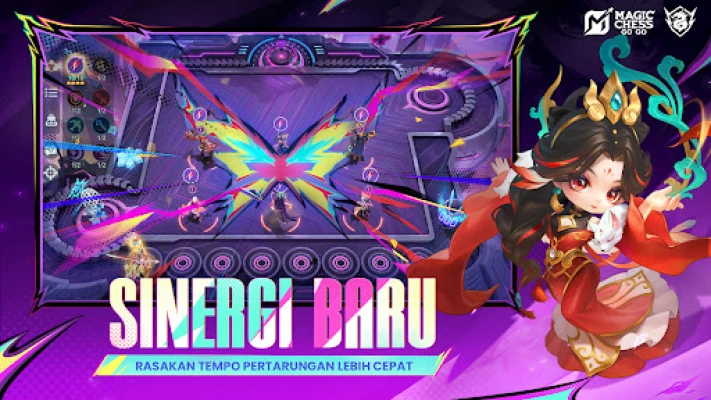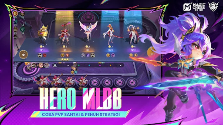 Magic Chess: Go Go adalah game strategi baru dari tim MLBB. Nikmati gameplay santai dengan hero MLBB favoritmu, fokus pada taktik dan keberuntungan. Rekrut hero, hadapi 7 pemain lain, dan kuasai medan pertempuran menggunakan skill unik Commander.